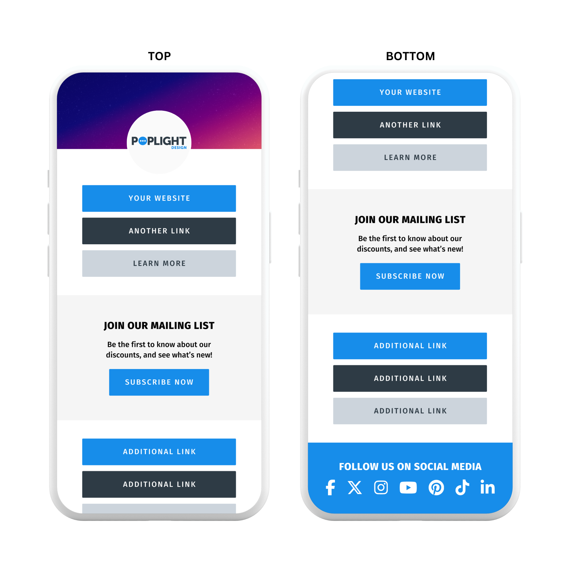Perfect for showcasing all your business or social media links in one easy-to-navigate design.
